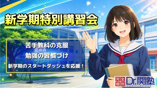 ドクター関塾ではスタートダッシュに向けた皆さんへ新学期講習会を企画しました。